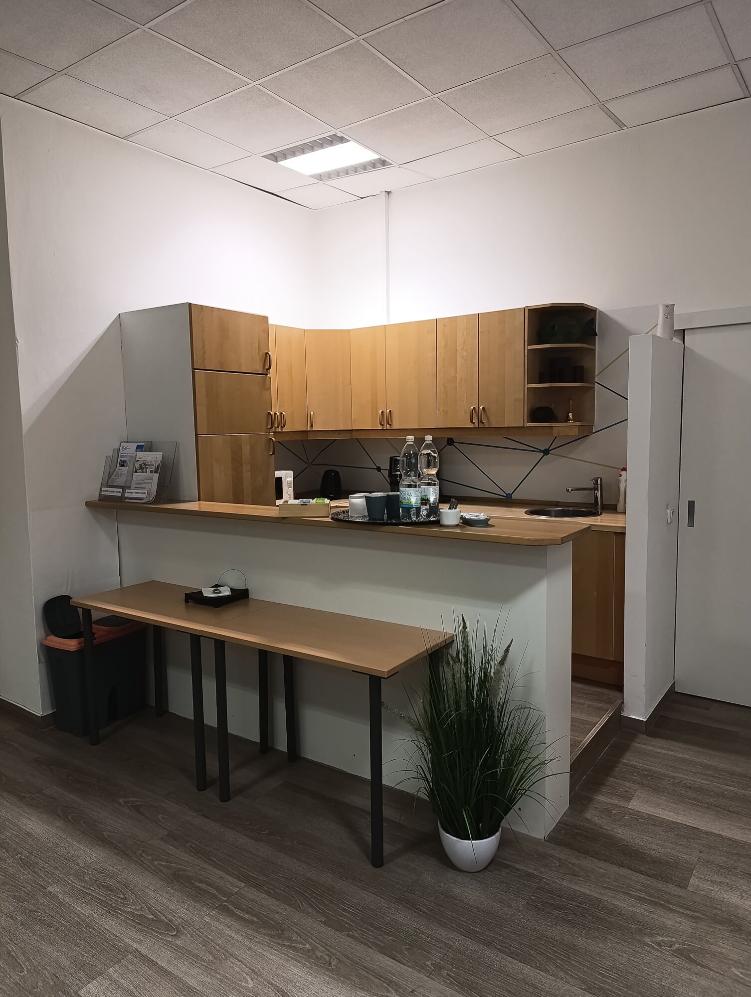 kávovar s výběrovou kávou, lednice, mikrovlnka, vždy čerstvá voda a čaj